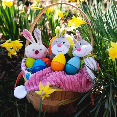 Hippety-hop! This cute bunny is both a playmate and a cuddly blanket. When it is rolled up, the cuddly quickly becomes a cute character with fascinating elements to touch, listen to and explore. Materials:cotton, spandex, polyester. Dimensions: L 19.7 x W 6.3“. Cleaning Instructions: HABA’s plush baby toys are machine washable on cold/delicate. Please do not tumble dry.