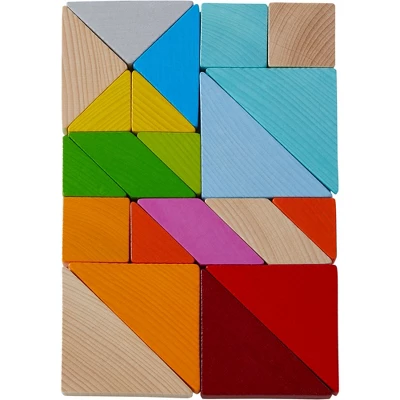 - Contents include 21 wooden pieces with vibrant designs and patterns and 20 laminated tear-proof template cards in 3 degrees of difficulty.