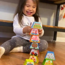 - The large blocks (measuring 2.4″ L by 1.6″ W by 1.6″ H) also encourage standard block play including sorting, stacking, and pattern-making and are suitable for children ages 2 and up.