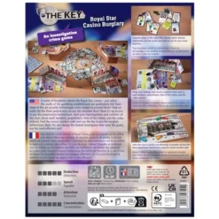 Get ready for the ultimate whodunit! In The Key: Royal Star Casino Burglary, investigators will need every clue up their sleeve to solve this trickiest of crimes. The Royal Star Casino has been shocked by a series of burglaries that have shaken the gambling world. Somehow three perpetrators accessed the sensitive data, but how? Players will start their investigations by combining all the clues about vault numbers, perpetrators, time of the crimes, and the codes entered. In the game cards for this case, the torn edges of currency straps must be examined, elevator movements must be put in the right order, and code tiles must be correctly put together. Witness statements about the activities on the evening of the crime add extra suspense until the correct number code appears that will put the burglars behind bars. Note: It’s not always the speediest investigator who wins, but the most careful and efficient one!