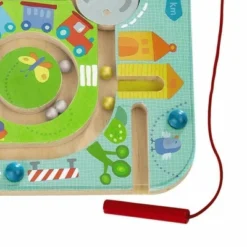 In this educational magnetic toy, the object of the game is to help the colored balls find their way home to their matching color garage. Can you get the red balls to the red house? the blue balls to the blue parking garage and so on? This Montessori learning toy fosters concentration and strategic thinking as preschoolers independently work to get around the obstacles. One of the roadblocks must be guided along a track to move it out of the way. The other one can be rotated to allow one ball through at a time. Younger children will delight in simply moving the balls along the maze. Older children will problem solve how to tuck a ball in one of the alcoves to let another color pass or to turn a corner quickly to dislodge a color that is unexpectedly along for the ride. The three colored buildings have recessed compartments to hold the balls so that they don’t fall out of place if the board isn’t held completely flat. Pro tip: Hold magnetic wand at 90 degrees for best results. HABA is a German company, family owned & operated for over 80 years. We are known for our strong commitment to safety, environmental responsibility and quality design. This item is designed in Germany and made with strict care in China. All HABA toys and games, regardless of manufacturing location, are rigorously tested to both US and European Federal safety standards for toys.